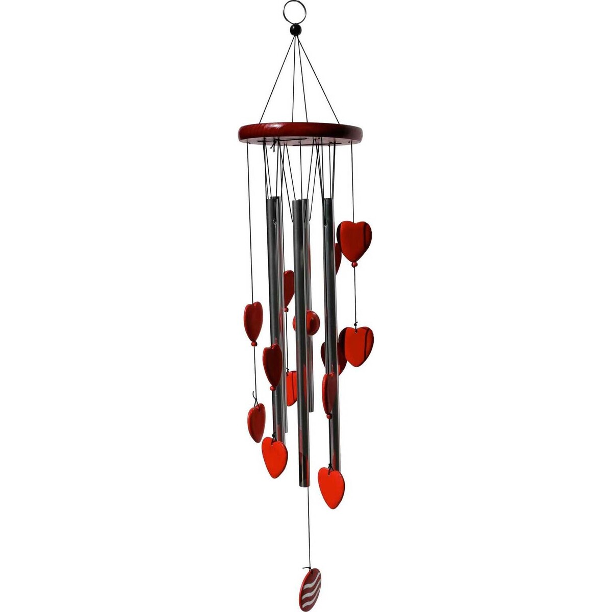 The item Windchimes Red Hearts measures 13x13x70 cm. It consists of metallic pipes and heart - shaped crafts of red colour. These are suspended in style using strings from beneath a flat and circular base of wood. This remarkable architecture is in turn suspended at four distinct points again using tight strings. Owners of both commercial as well as residential properties can apply this product to their advantage by hanging it from unique spots within or outside their premises. Windchimes Red Hearts brings forth an elegant feel to an observer due to its discerning use of red hearts. As such, it may be employed to add value to high - profile settings of any kind and in therapeutic manner within places where soft harmonious sounds are desirable such as hospices.