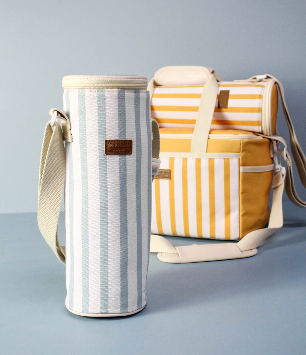Our Wine Cooler Bag Canvas Sky is genuinely something special. These gorgeous striped coolers are crafted from quality canvas with a PEVA lining, giving them a substantial feel and great insulating properties - perfect for keeping that bottle of white, rosé, or bubbly at just the right temperature at a picnic, barbecue, or weekend away. We can't help but notice how the classic powder blue-and-white stripe design pairs beautifully with a wide range of homeware lines - it’s such a versatile choice for spring and summer. The natural coloured handles give it that little hint of soft luxury, too.