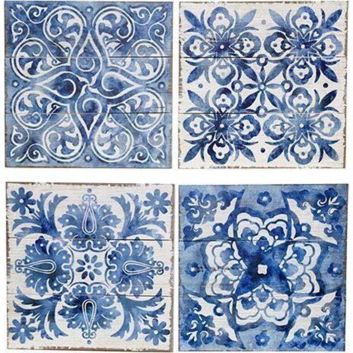 The famed blue tiles of the mid eastern countries with the gorgeous blue colours prominently featuring in them, have been loved the world over because of the intricacy of the designs and the confluence of cultures they present in their motifs. Be it floral or abstract, the designs somewhere reflect the cultural leanings. Here are four such prints on wood that have rich blue colour that depicts intricate patterns , each varied yet in some means flowing into one another. The wooden plaques are about 40 cm in height and width and can be placed either in a cluster or in a linear way or whichever way they can be made to remain close to each other. If split, it could be used in pairs also. When places together they will dominate the wall with their utterly beautiful designs that have a simple washed indigo and white palette , that is very mid eastern and renaissance in its feel. Will allow the room to acquire a centering. As pleasing to look in the living room as it would be in nay part of the house that needs fresh facelift.