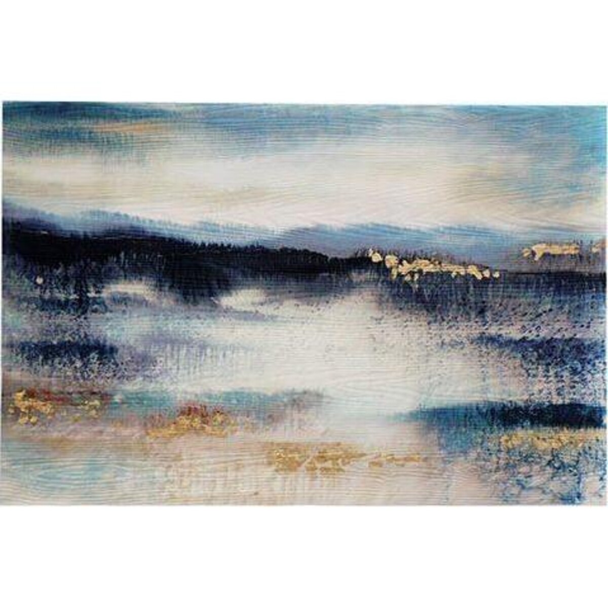 The mist covered skies gives way to a sudden burst of colours as dawn breaks, but as light spreads the dispelling of gloom happens with an equal pace and that is what makes sunrises all the more animated. Here light seem to be spreading with such speed over the water body that it seems to be coming alive with a life of its own - reflecting back to the sky the glory of light. The gloominess still captured in the corners of the frame seem to hold on a little longer as if not wanting to give away its powers to day. The artist has truly brought out this duality of light and shade so perfectly in this masterly art work. Lavida has used the most sophisticated of print techniques to get the look of the colours and allow the depth and dimensions to be alive even though it has been printed on such a rustic medium such as wood. This dawn wood plaque is an imposing art work - at 120 cm in width and 80 cm in height , its landscape will bring in the true beauty of the outdoors to the interiors of a room and make it marvel in its beauty.
