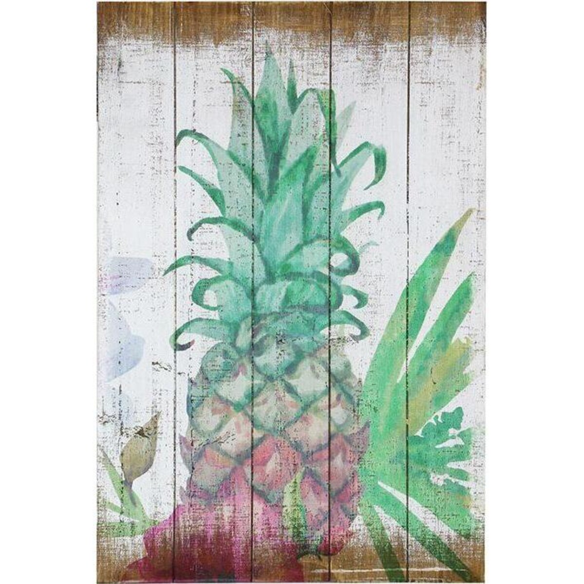 Summer fruits and a ripening pine apple can be works of art too! And proving this is this adorable picture with its water colour on wood that creates a vivid impression of shape, colour and form, with depth and dimensionality that makes it feel like real work of art. These modern prints on wood makes for a lovely splash of casual décor initiative in space that could do with some more brightness. The wooden plaque with its aged looks, the white wash rubbed off in places lends it a shabby appearance so in keeping with the love for shabby chic that homes have. The plaque is 60 cm in height and about 40 cm in width and will look stunning in its soft colours and hues, lending the wall that little natural beauty spot . Place it in spaces that could do with some looking up and get ready to get complimented for your easy breezy décor styling. The colours are presented with a great deal of care so as not to fade despite exposure to light. Could be wiped clean and will retain its lovely looks over a long period of time.