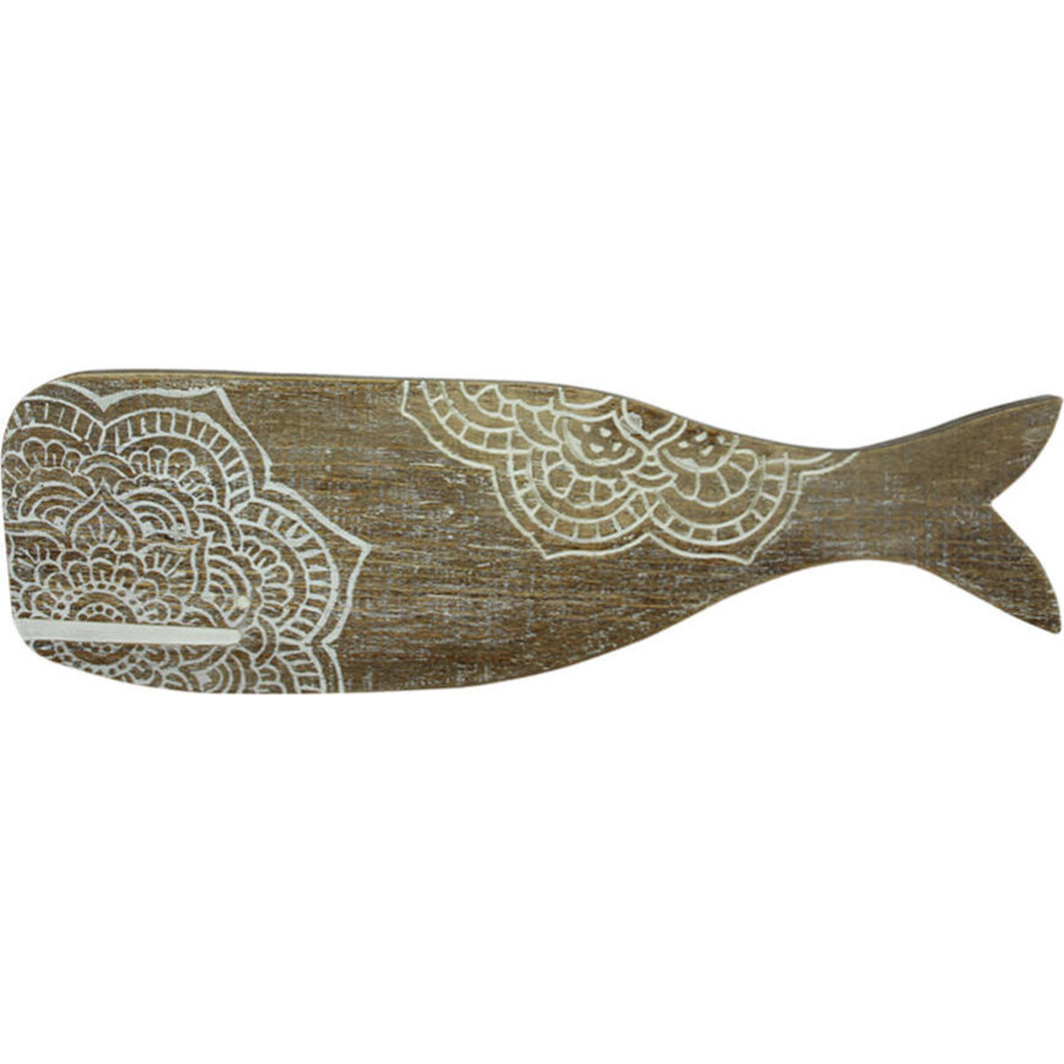 Shabby chic in style rustic to the core-the very usage of wood in this manner is inherently hinting at a style that is very beachy and coastal. Distressed natural wood that has been shaped like one of the largest mammals, makes for a truly unique idea. This creature is all of 60 cm in length and about 18.5 cm in width, with its prominent bulbous head and its tail that makes its shape so distinctive. The print in white adds to the design detail that is so charming. The wood colour is natural which makes its impression all the more pleasing. The whale will help liven the wall to the coastal theme. Place it on walls that need to align with the much-loved beach theme and add a touch of shabby chic rusticity along with it. Add a few coral sculptures, some white linen or some shells and ship models in the décor and let the magic of the seaside seep in.