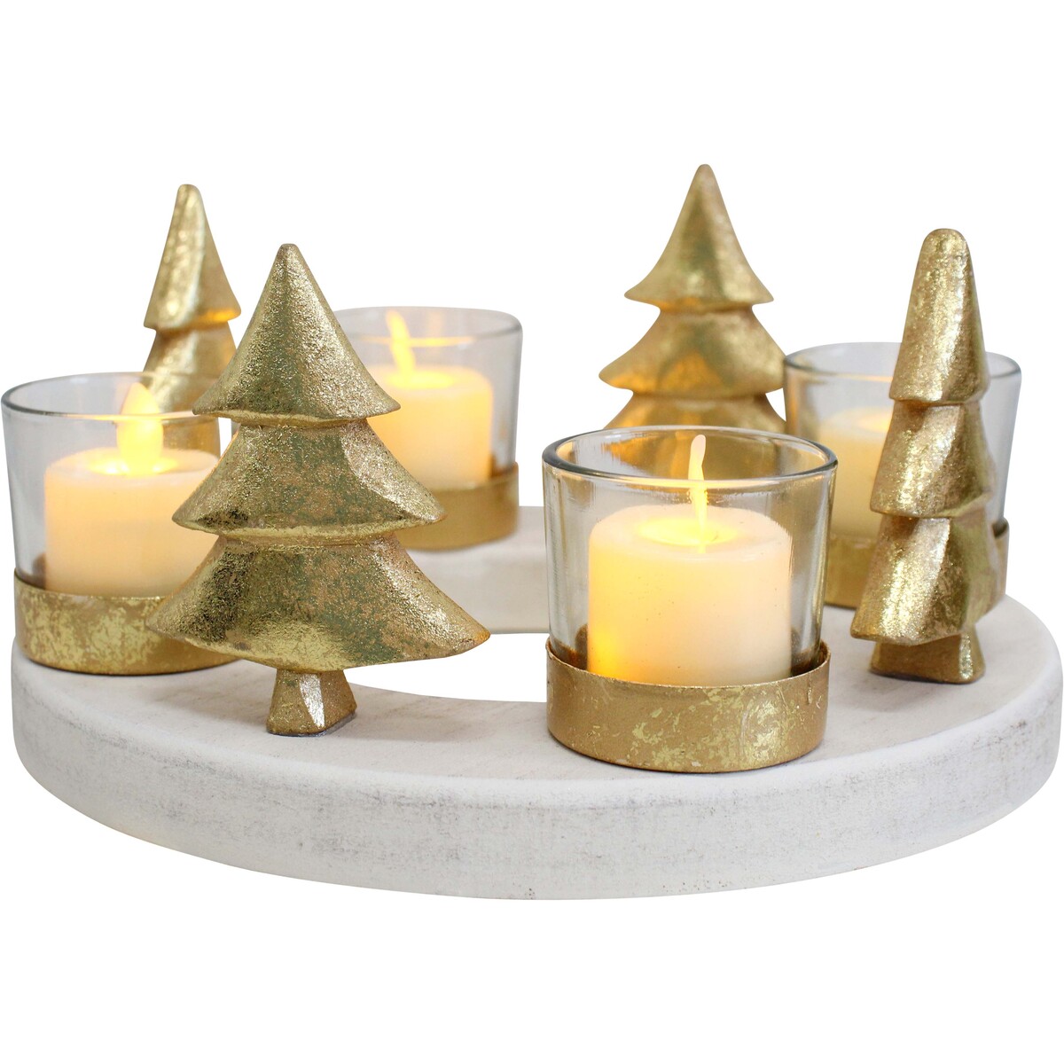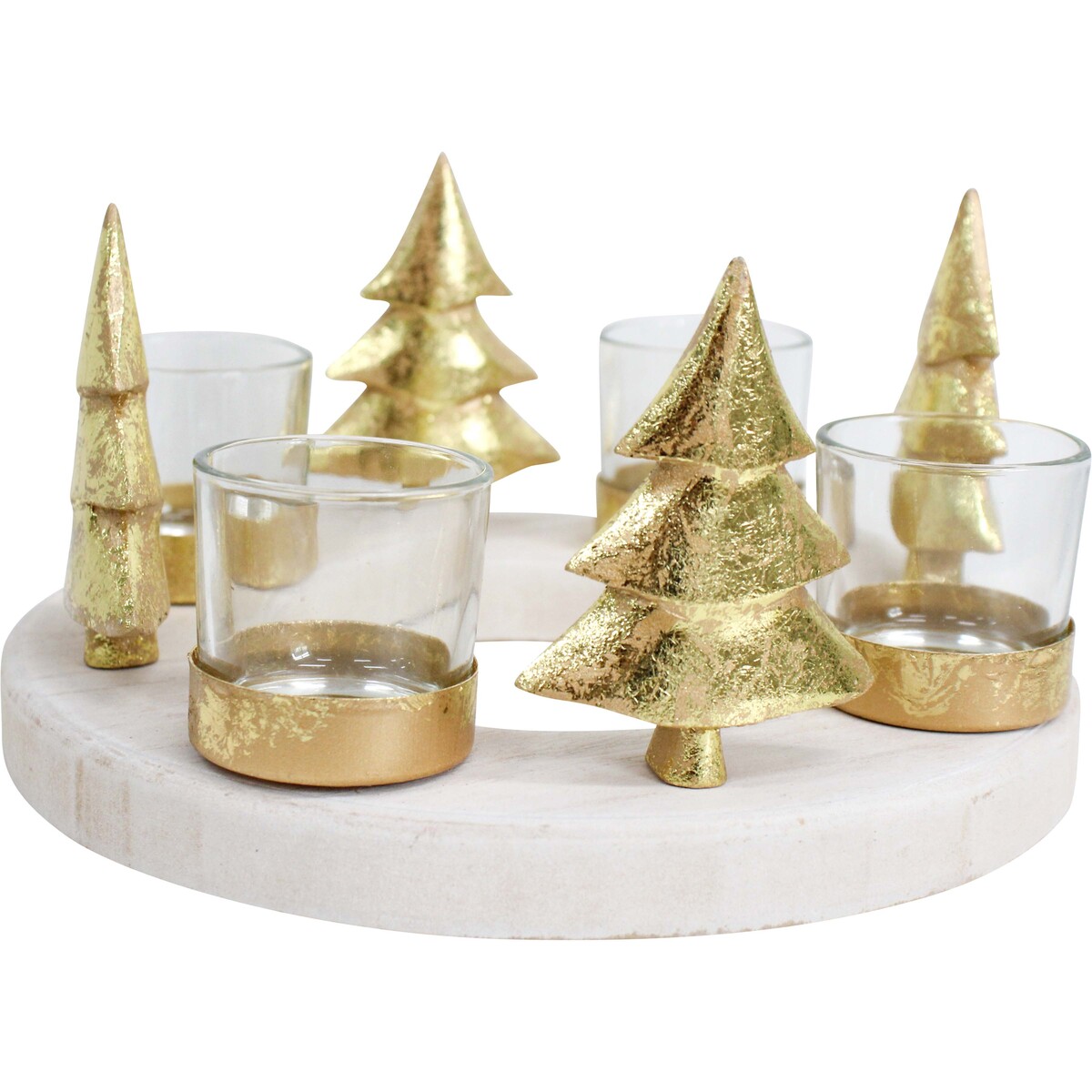 We're really quite excited to show off our Wooden 4 Tree T/Light Holder Lrg this year. This piece just has that sense of timeless festivity, doesn't it? We’re talking about a stunning centrepiece with a beautifully simple circular MDF base, crowned with four golden metallic Christmas trees and four glass tealight holders (tealights not included). And that warm gold just looks so good paired with the gentle cream timber underneath. We have to point out that finishes will vary, but in our opinion, we think the slight variation just adds even more charm. The look is a little luxe and a little understated - this holder is definitely going to catch an eye or two around dinner tables, entryways or as part of festive shopfront displays. At 21x21x11.5cm, it’s big enough to make a statement but also works really well on tabletops and console displays. It complements so many styles - rustic, classic, boho, modern - that we know customers can enjoy this for years and years.