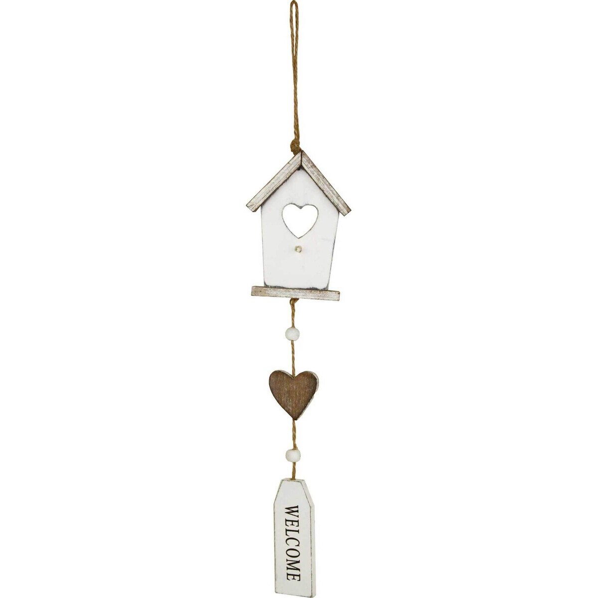 Highlighting the entryway with things that accent not just the look of great hospitality but also lends a home the feeling of being welcoming to all who enter the door - this hanging welcome sign with a tiny cottage is made of wood and has a length of 41 cm. When hung from places high, the house that is right on top followed by the star and the word welcome on the tint little tablet all fall into a wonderful sequence that makes so much sense. This exterior home accent is made of colour washed wood that has been variegated in its design to bring out the wholesome feeling of a home that is filled with the warmth. The tiny little heart seems to be offered to family and friends as they cross the entryway as if telling them that you welcome them into your home with all your heart! It is truly an effortless way to changing the look of your home entrance.
