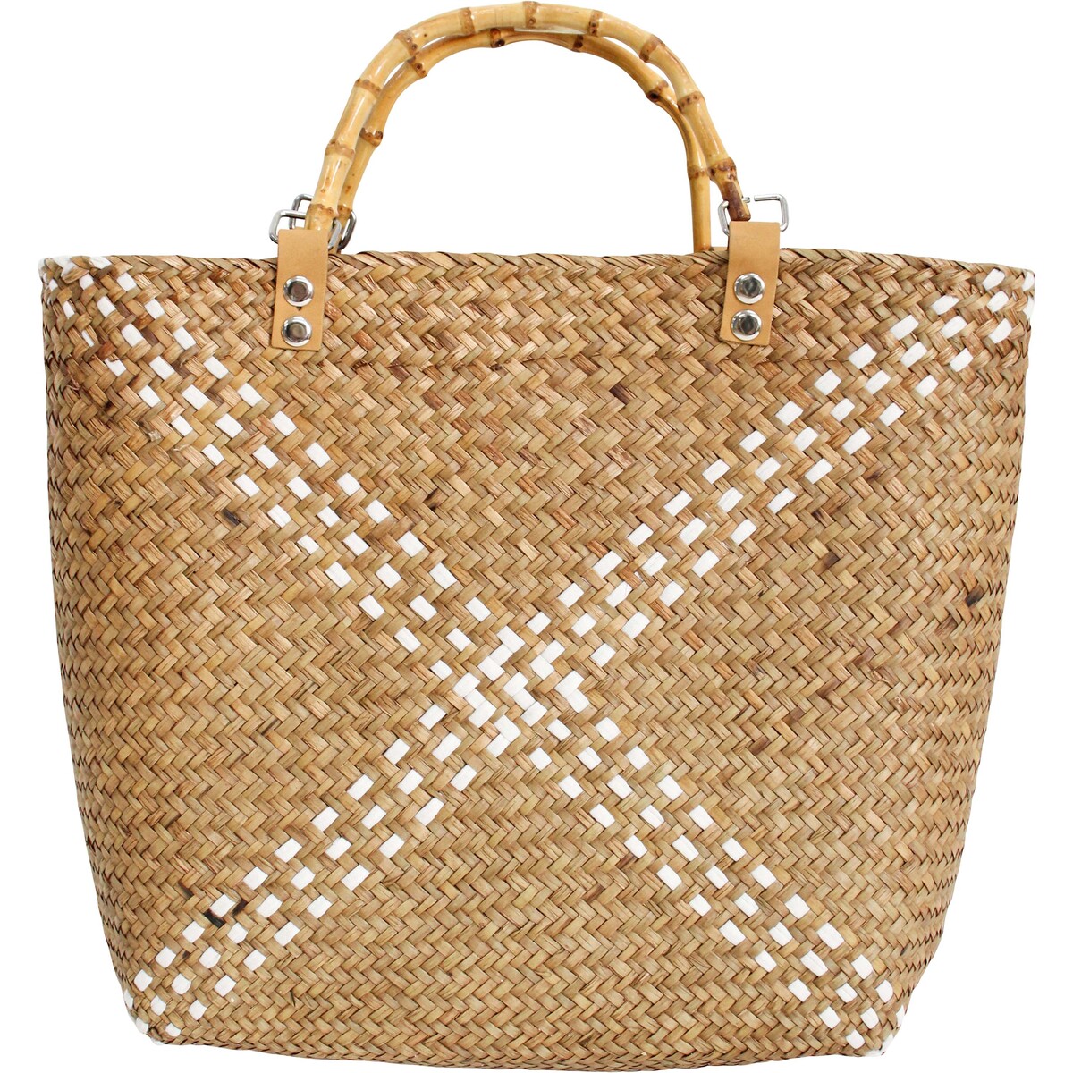 Belonging to a separate class of its own, the Woven Bag Nat/Stitched Bamboo Handle is one of the various newly designed bags we just very recently updated into our hugely selling category Wholesale Bags and Purses. The bag features a body woven using organic brown straw; while across the bag in an "X" fashion is white coloured straw stitching. The 11 centimetres tall ergonomic handle is made from natural bamboo while these handles are held by pins strapped down by brown polyurethane leather. The bag has a 40 centimetres length, 8 centimetres width and 33 centimetres in height.
