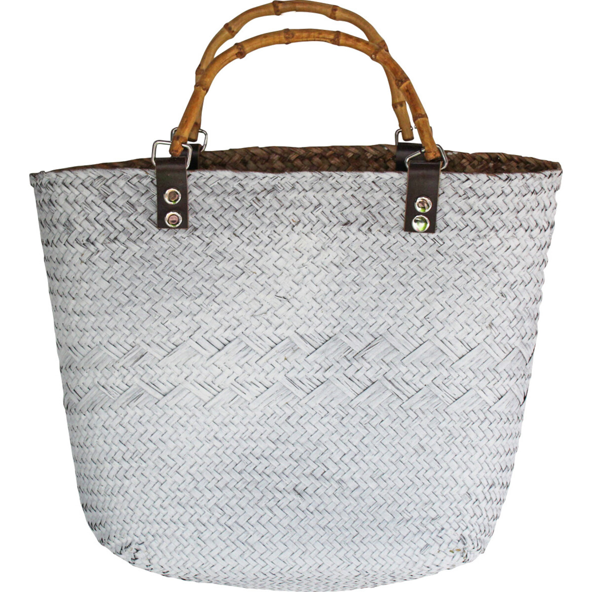 The beauty of things made in the traditional way using organic material comes from the very fact that they have been in use for centuries, much like woven straw matting that has been recreated in such a brilliant manner into everyday use accessories. This handbag is off white in colour and thus should be great with most day time clothes in lighter shades. The spacious bag will hold your everyday need articles with ease - and its wide open top allows you easy and free placing and removing of things, sturdy in built and yet lightweight, it has tiny detailing - like the metal rivets holding the handle anchors firmly and the bamboo made smooth handles - all of which add to its simple yet stunning beauty. 31 cm in height and about 26 cm in width at its widest - this is one spacious bag for your everyday needs.