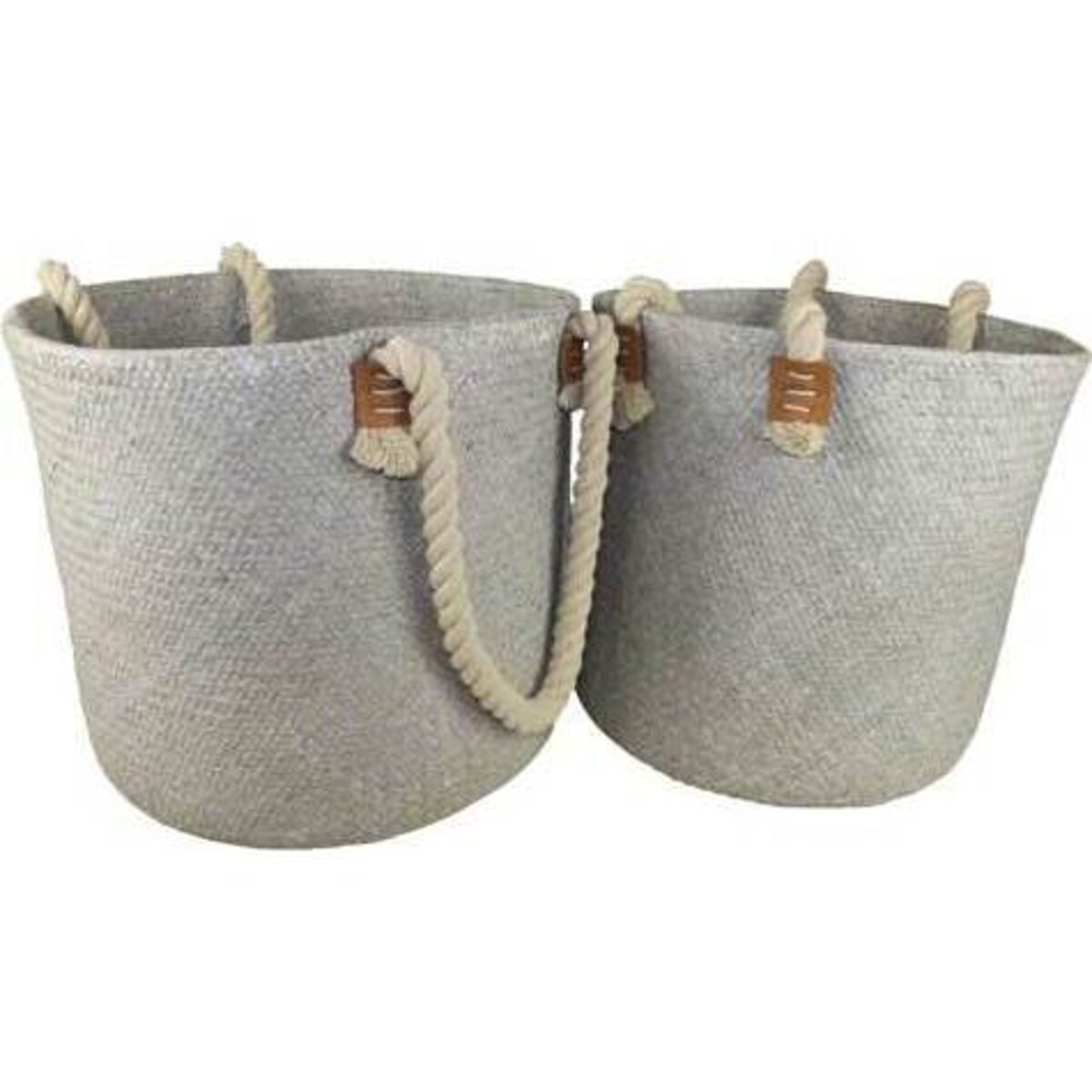 To make any house be more than simply four walls enclosing things we need, one needs to build in some kind of personality - an imprint of what we are and what we like - so if you love things countryside and farm, you will love to have decorative storage baskets like this set of two white coloured rattan ones with cloth handles that are very soft. The larger basket has depth of 40 cm and the smaller one is round 35 cm in height. They are soft and smooth and the weaving expertly accomplished. The white colour is like a natural wash and the resilient fibre will see one through much usage. The baskets could be used in a variety of ways - for laundry, for shopping, for carrying groceries, for keeping toys and the kind of stuff that any room of the house would need. The very look is so pleasant that any part of the home will love its presence. The cloth handles are soft and will not be rough on the fingers - they also come with wooden beads at the ends giving them a lovely finish. The base of the baskets are such that are topple free and quite steady on flat surfaces.