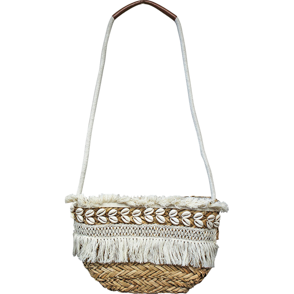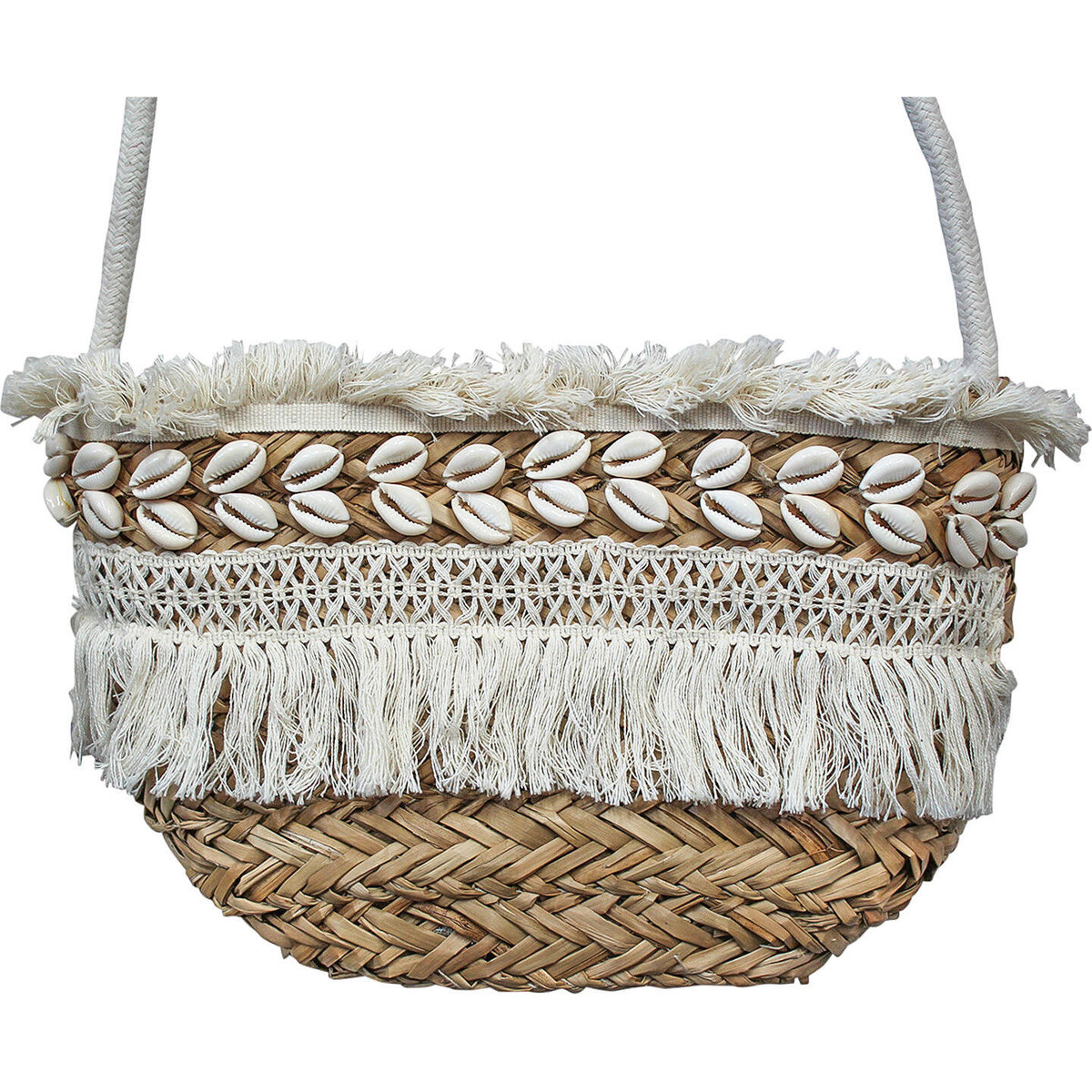 The material used in every part of this bag is natural and above all it has a certain kind of personality that things handcrafted usually possess. Designed to give you holding comfort the bag comes in wide size with an opening that will ease your accessing the bag and keeping things in t easily. The cotton band on top with shells placed on them adds to its evidently natural kind of feel. The seagrass has bene treated and woven to make it smooth and fine under your hand. The weave is sturdy, the bag albeit is lightweight but durable enough to take the brunt of overloading. The tasselled lace trim on top and bottom has this lacy fabric which creates this very delicate feel to the otherwise rough and ready tote for your everyday need. Be it a day out at the beach, your shopping plans or an event you wish to attend - carrying your much - needed thing in large and roomy bag makes life easier for most of us.