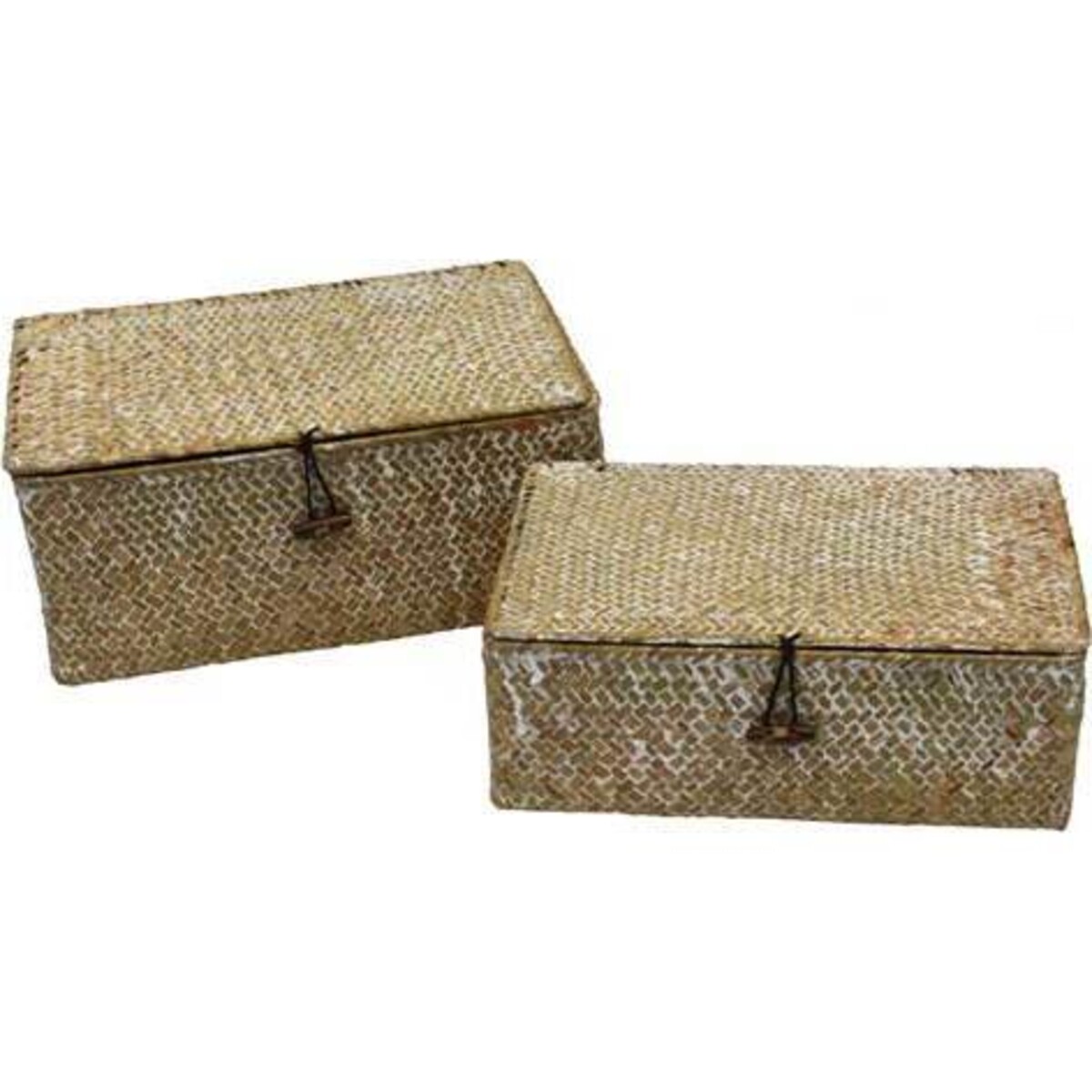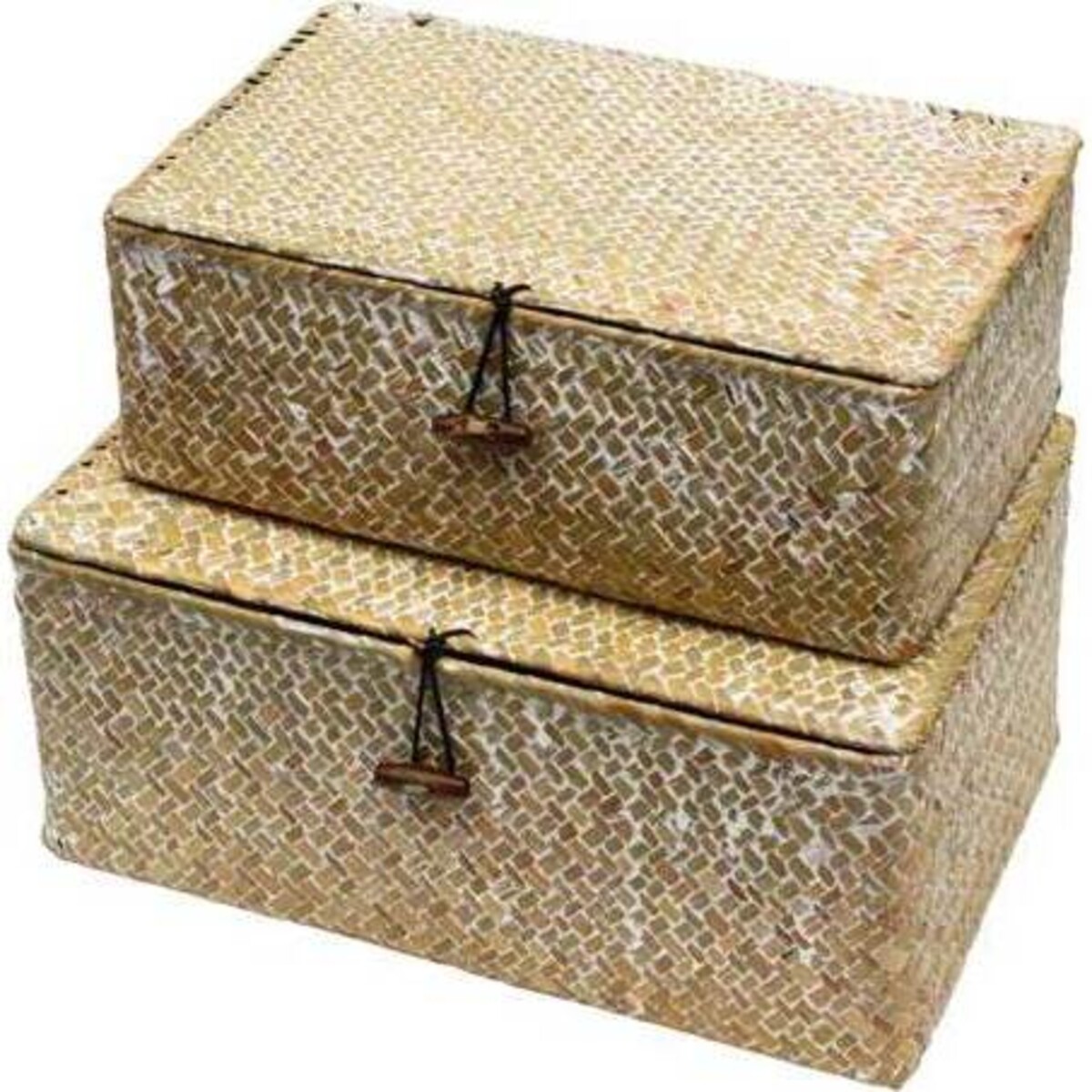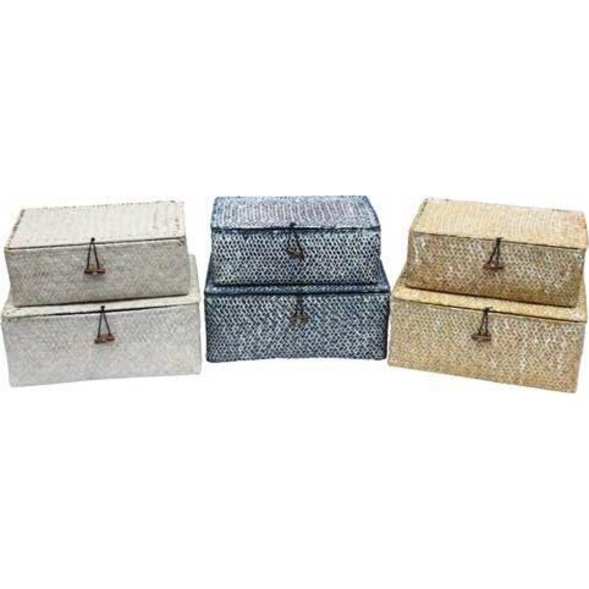 A useful set of rattan boxes that comes in its own undyed natural shade woven neatly and styled simply specifically to focus on its job as a place to store and keep one's most loved little possessions and keepsakes - perhaps even handwritten letters, precious little notes and cards one rifles through when in a melancholy mood. Very organic and wholesome in its beauty, this set will look perfect in decors that spell country and farm, rich in its simple colour palette where boxes such as this will add more warmth and home style appeal. It can be kept atop tables, by the bedside, or in the corners along with some ferns and greens. The weave is apart from being neat, durable, the frame neatly styles and the box come in sizes very convenient for multiple usages. The boxes stack up one on the other and can be stored inside an almirah with ease. There is no lint to the number of uses this set of boxes can be put to - truly an item of utility with great natural beauty.