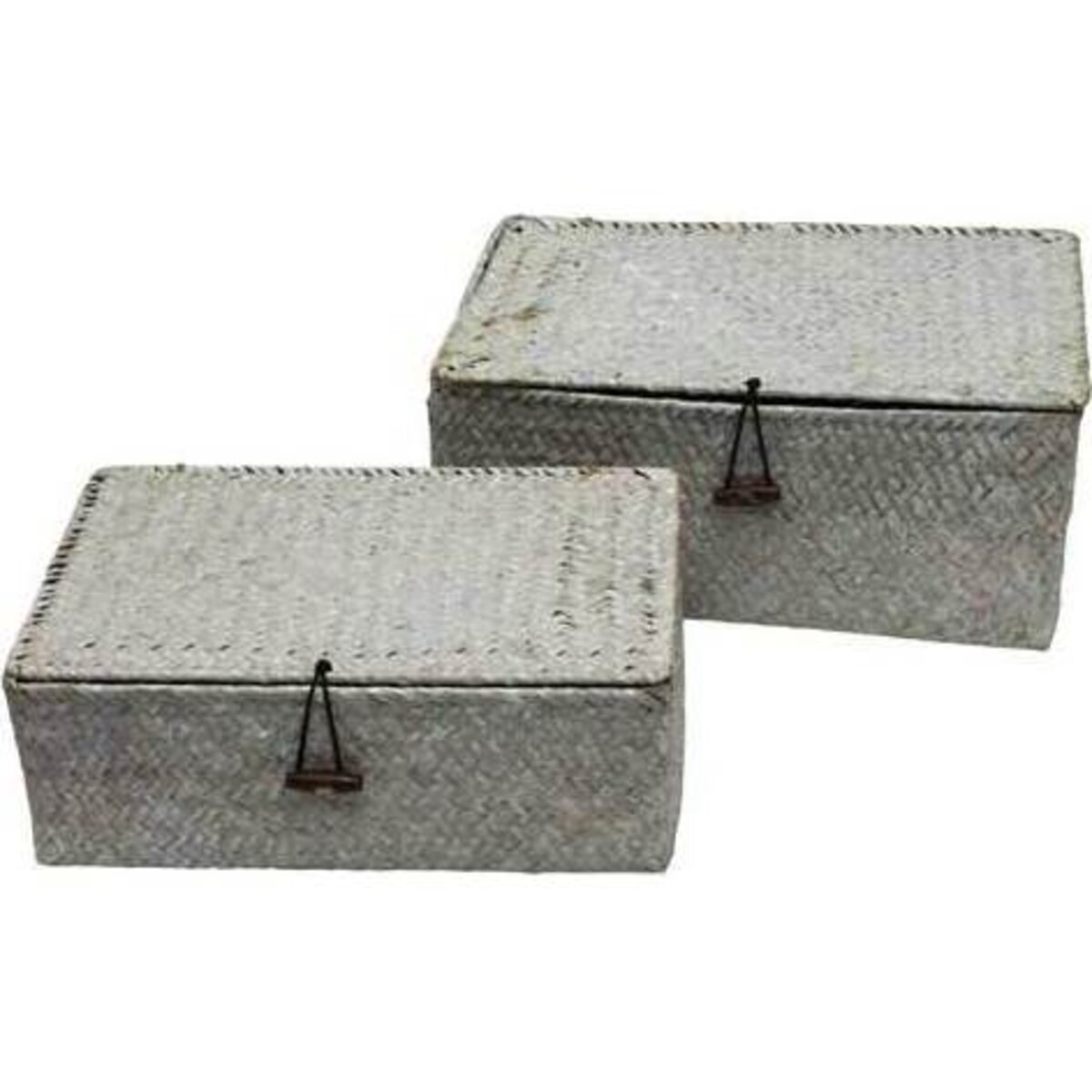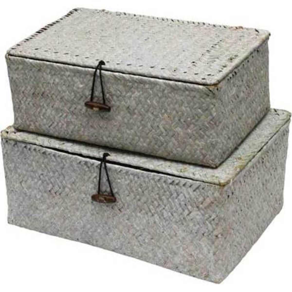 Rattan possesses a natural charm that comes as much from its weave and texture as from the manner in which it gains a shape and look after weaving. The age old practise of basket weaves has been beautifully replicated in this finely woven rattan box set that has been given a soft white organic white colour wash. The colour is not too dense leaving streaks of the original colour peeping right through. The boxes come in a convenient size which can be utilized in numerous different ways. They are structured simply and can be stacked one on the other. The lid closes quite well with the help of a simple loop over a bead. Can be used as much for storing stationery items as for keepsakes that bring back lovely memories to life. The box retains its shape and structure because of the metal frame through which the entire weave has been done. Solid, long - lasting and utterly desirable to have around the house, this set of boxes is as useful as they are great looking.