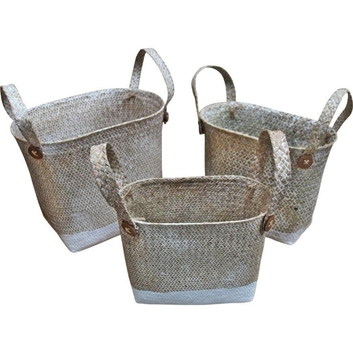 The handles are the best feature that you can find in this particular set of three tremendously well created design in baskets ware from Lavida. Resilient straw given the shape advantage from the iron rim. The handles get a tiny button detailing that takes away its look of utter simplicity, adding just that delicate dash of interest minimally. The three baskets set come in a size that gives it great utility in your home and office spaces alike - be it to keep stationery or to place knick knacsk that you need to reach out for easily. The base has been designed so that it gets to stay upright despite there being adequate weight in them. The large looped handles are fine and easy on the hands and yet sturdy and strong. The tubs have awash of white colour and the lower portion too is painted a pleasing white that combines fabulously with the rest if the straw - coloured beige colour. Lightweight, sturdy ad easy to move around to any spot where its utility is more critically needed.