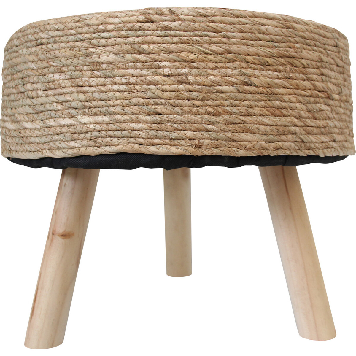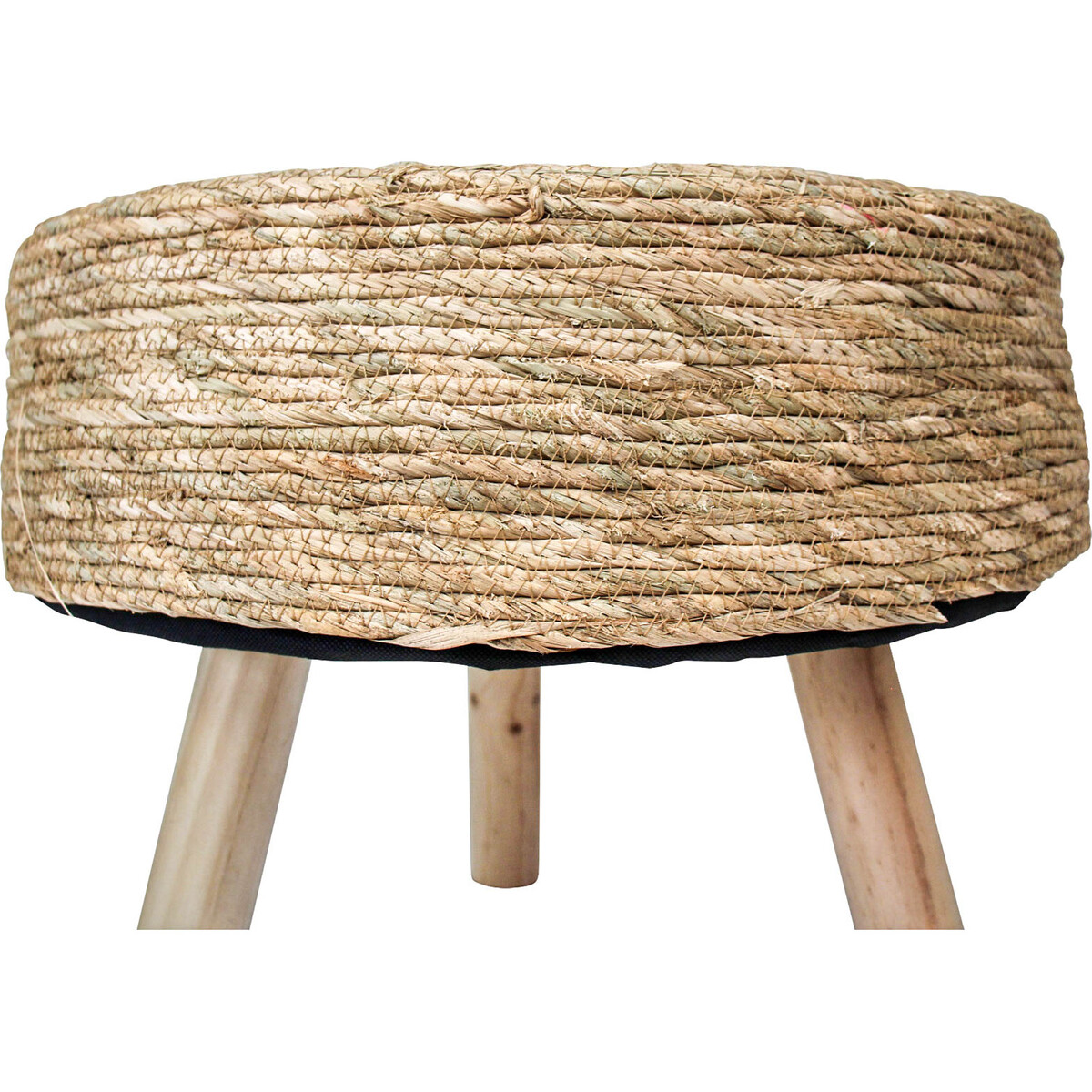 Made from wood and maize fibre -this is a kind of furniture piece that will blend in with so much ease into any kind of space-be it modern or shabby chic or town and country-there is an organic kind if look in its textured design that adds a stunning kind of uniqueness-the neutral natural colour helps as well. The stool top is 49 cm in diameter and the height at 40 with the slanting legs which look really sturdy adds more to its chic appeal. The maize fibre has been expertly woven with no frayed ends-well-crafted by expert hands that know traditional style weaving and its ability to with stand much usage and weight placed at top. The fibre will retain its natural sheen and the usage of this stool will surpass all your expectations. The wrap around style design looks particularly appealing because the design has been kept at the simplest-simply wound and put together. You could use it as such for sitting as it could be used for placing a lamp or a potted plants-there are umpteen choices when it comes to usage.