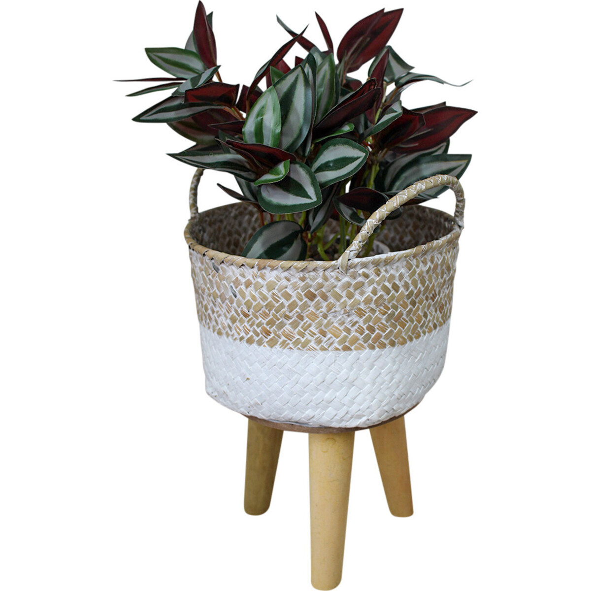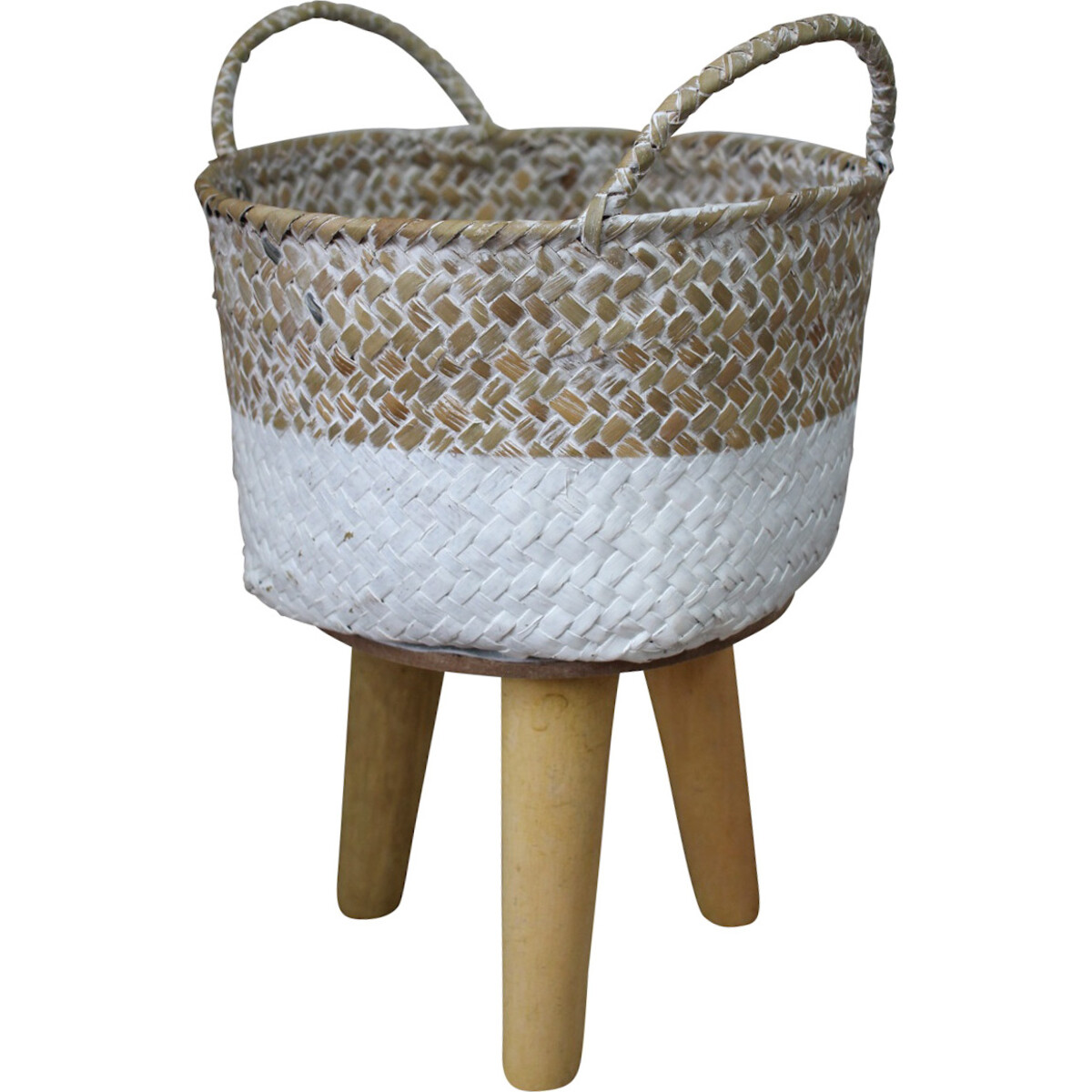 Hand crafted in a rustic finish and material component, the Woven Planter Sml White is indeed an outstanding planter that deviates from the norm and instead, employs artful resourcefulness in creating an unusual but much loved straw planter. The planter is made in a tripod shape with the three legs made of sturdy, durable wood in order to be able to support whatever weight it would need to carry. Resting on top of this tripod is a round woven straw mat meant to house your customer's plants. The exterior of this planter has its lower portion lacquered in plain white and the upper - in white wash appeal.