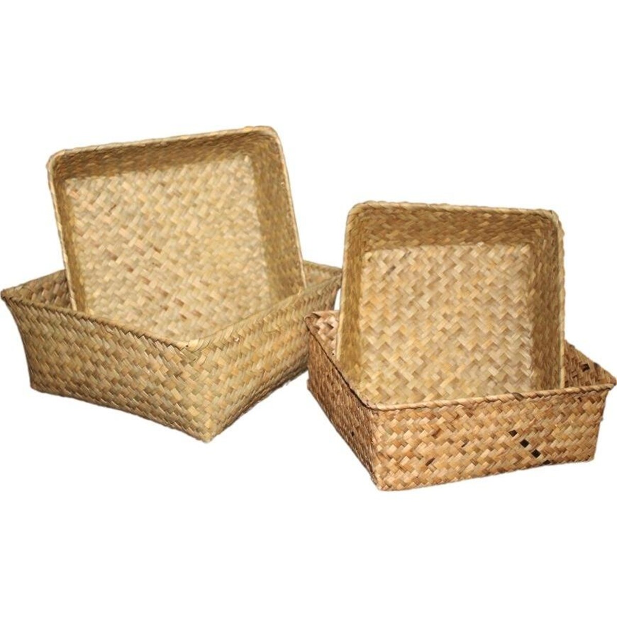 Create an enhanced organizational option for your dresser, or your children's study table with a set of tubs made of straw that are simple in weave yet strong and sturdy in design. Washable and lightweight, they have been given iron made rims and are sized conveniently at 26 c dimensions in the largest size and 20 cm in dimensions in its smallest size. They four settle in well nesting one inside the other and are easy to store even when not in use. A set that could be used to keep your dresser looking well managed, or your stationery collection well sorted, or simply to help keep your smaller artless easy to find. The tub like square baskets are washable, made from organic straw, that have been kept natural in its original colour. The smooth sided troughs are rounded along the rims thus making them seem well finished and worth flaunting as organizers. You could use them in the wardrobe or even to serve your fresh bakes breads.