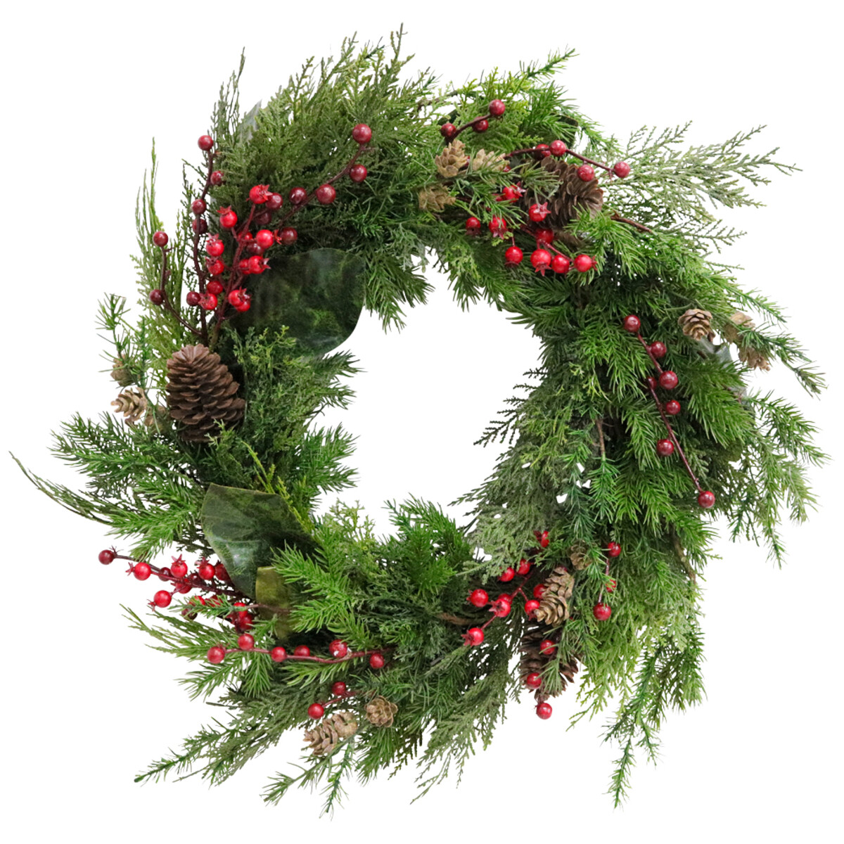 Our Wreath XL Leaf Medley is a real stunner and always stands out at trade fairs - it’s all about the huge, layered look. We see a lot of buyers leaning towards more natural, organic shapes these days, and this one’s just ideal for Christmas or year-round homes that lean rustic. The bright reds look fabulous against the green plastic foliage, and those little pinecones really create some texture and pop when hung up on entryways or even over mirrors - but you know how your customers like to style their greens.