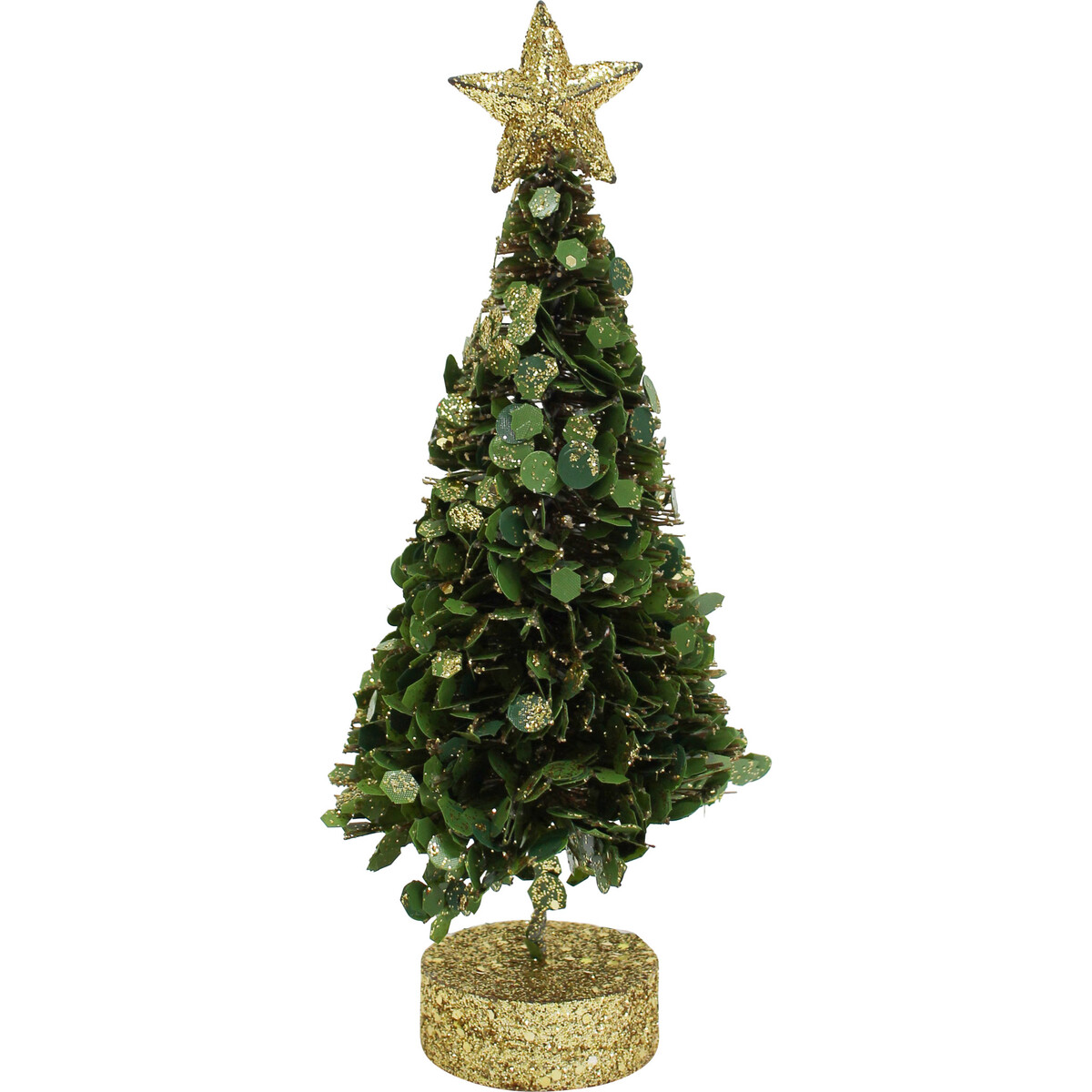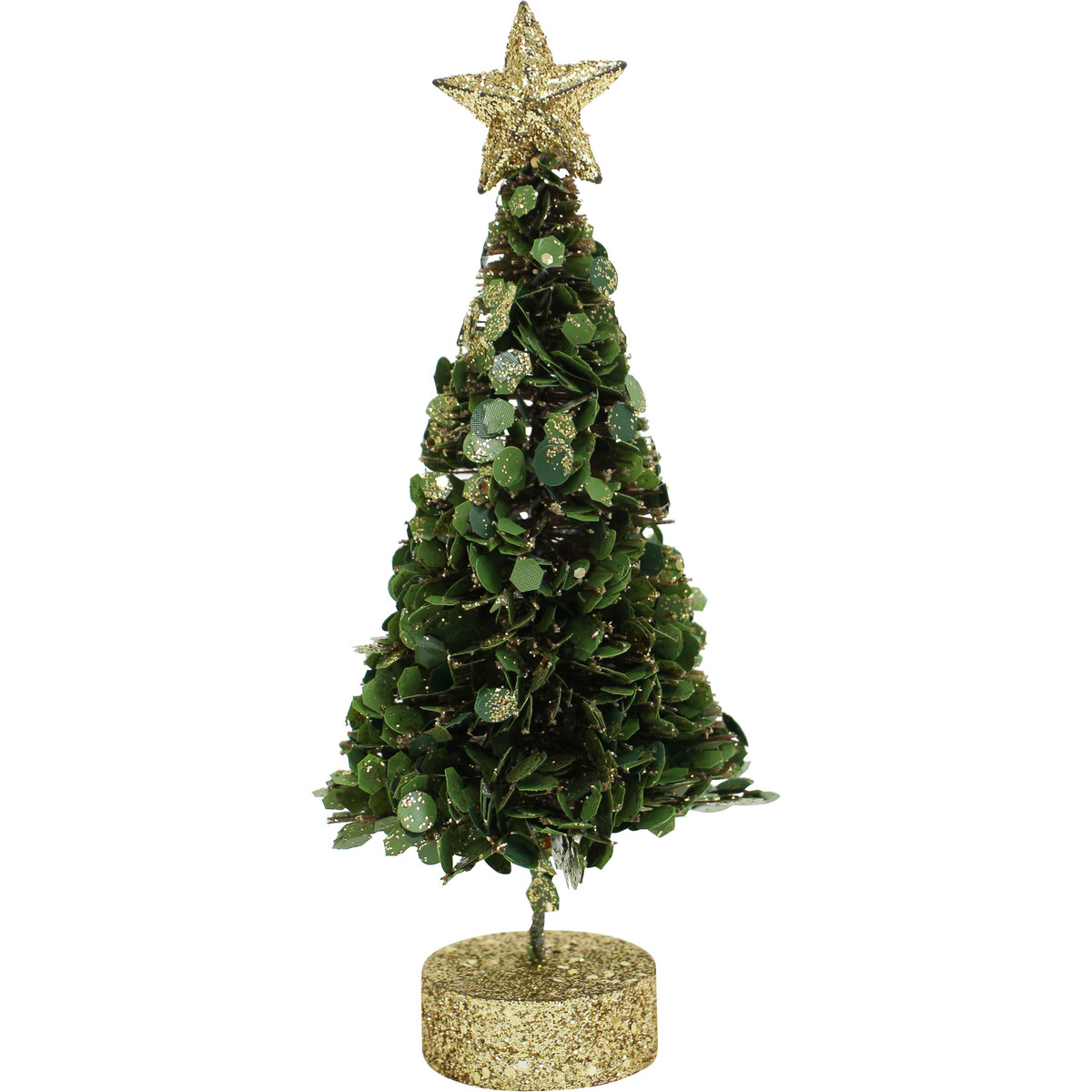 Perfect for use in adding a Christmas festive appeal into every spatial environment including living spatial environment, work environments, entertainment spaces, fitness and luxury environment, business spaces, and wherever else humans meet or interact. Christmas is a global celebration. As such, it deserves to be decorated using only the best! The Xmas Tree Tinsel Sml is the perfect portable sized Christmas tree that can be placed on any and all even surfaces including tables, display shelves, dashboards of vehicles, boats, etc. The MDF base is ornately decorated using gold coloured sequins.